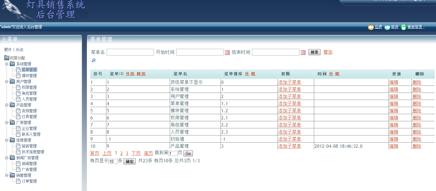 - 系统管理:菜单管理、模块管理、权限配置