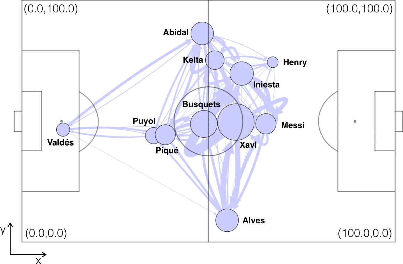 - Buldú, J.M., Busquets, J., Echegoyen, I. et al. Defining a historic football team: Using Network Science to analyze Guardiola’s F.C. Barcelona. Sci Rep 9, 13602, 2019.