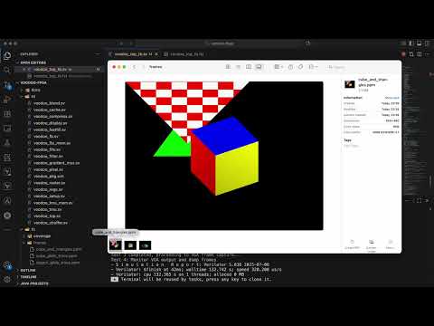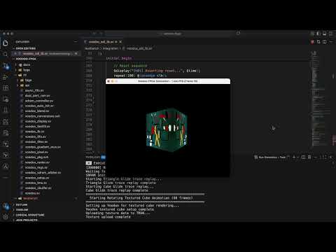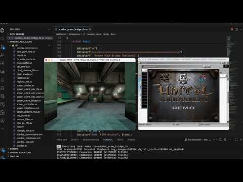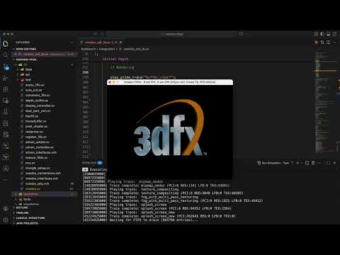 The design is verified using Verilator. A PCem bridge testbench connects the RTL to PCem over shared memory, replacing its software Voodoo emulation with the RTL design. This allows real Glide 2.x games running inside PCem to drive the hardware simulation and display rendered output via SDL in real time.